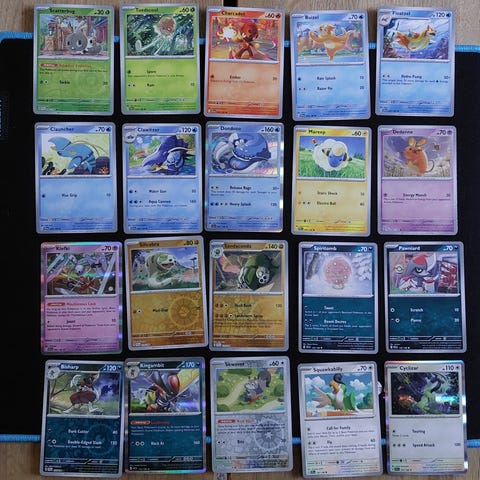 Myydään Scarlet & Violet Pokemon kortteja 19kpl. Hinta yhteensä 7,00e tai yksittäin ostettuna hinnat alla. HUOM! Hondour myyty!