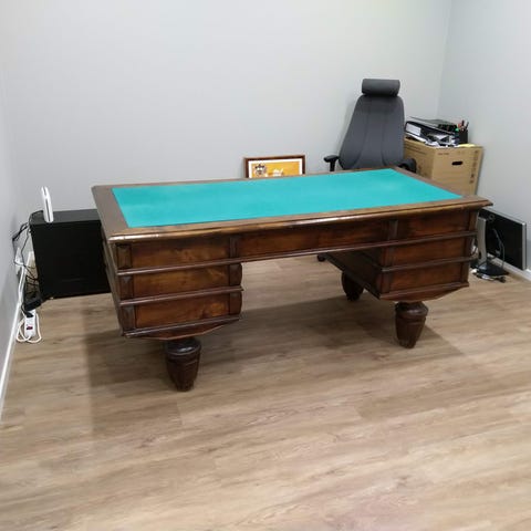 Pöytä on tukeva ja siisti. Pöytä on aikoinaan kunnostettu ammattilaisen toimesta.