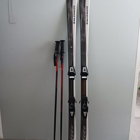 Myytävänä hyvät laskettelu sukset ja sauvat, sekä monot. Monojen koko 321mm (43). Suksien pohjassa muutama naarmu. Sukset voideltu, joten valmiina kovaan laskuun.