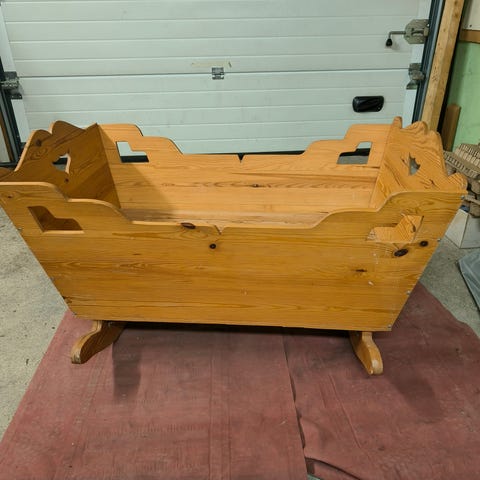 Myyntiin ihana vauvan kehtosänky. Muuten erinomaisessa kunnossa, mutta pohjan naru mennyt joskus poikki ja solmittu uudelleen. Tämä ei haittaa käyttöä, eikä näy ollenkaan, mutta on huomioitu tietysyti hinnassa. Kankaat siistit ja pesty ohjeen mukaan.