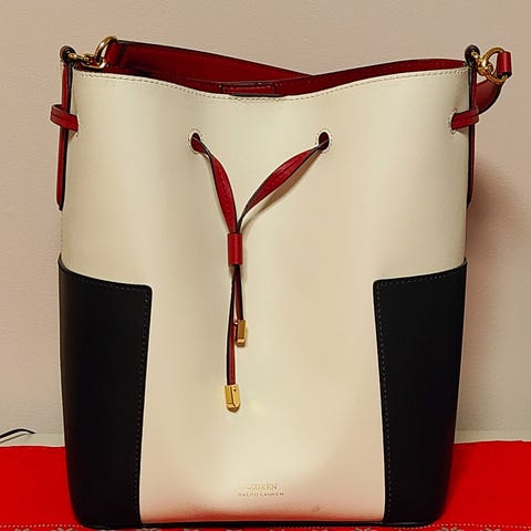 Musta, nahkainen Ralph Lauren Reese bucket bag