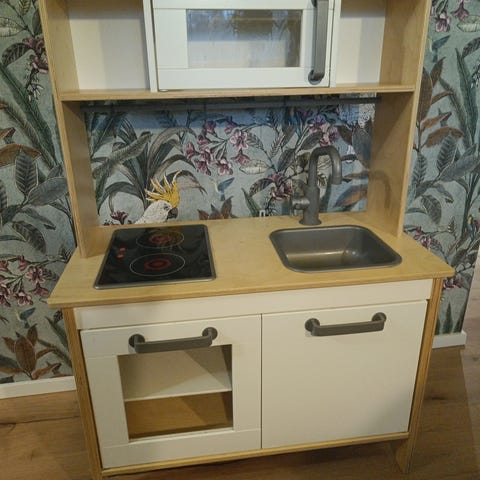 Kuvan mukainen lasten leikkikeittiö. Vaikka pukin kontiin lapsille. Toimitus onnistuu lähialueelle