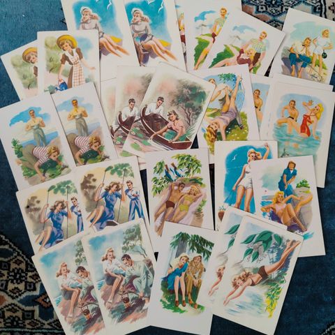 Olympiavuoden 1952 innoittamana syntynyt 4-värinen postikorttisetti, aiheena Pohjolan valkea kisakaupunki eli Helsinki. Kulkematon, virheetön, painojäljeltään aikalaisekseen erittäin laadukas kokonaisuus: alkuperäinen pakkaus ja 10 korttia, kustantaja Oy Artko Ab. Pakkauksen mitat 95 x 145 mm, korttien 90 x 140 mm. Takuulla harvinainen! Kotiinkuljetus järjestyy samaan hintaan Tampereella, lähetyskulut sisältyvät hintaan. Kysy!