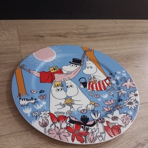 Arabia Muumi Pappa lautanen mustavalkoinen