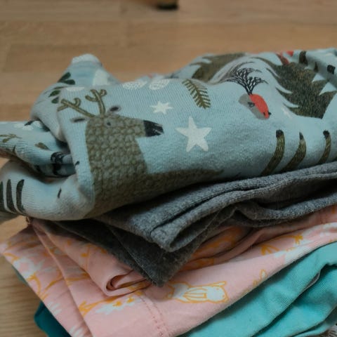 Kolme paitaa ja yhdet yöhousut. Koko 92. Kaikki ehjiä ja tahraton, mutta jo enemmän käytettyjä. Pesukulumaa on. Merkkeinä mm. H&M.