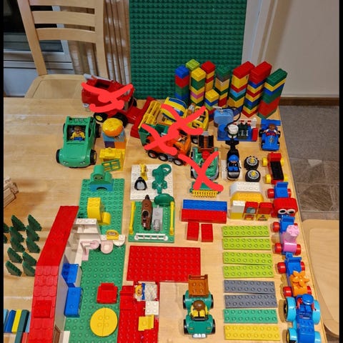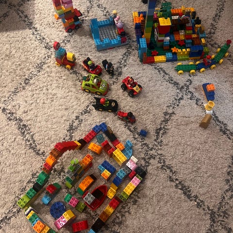 LEGO DUPLO rakennussarja sisältää erilaisia rakennuspalikoita, ajoneuvoja ja hahmoja. Sopii lasten leikkeihin ja kehittää motorisia taitoja. Materiaali muovia, värit monivärisiä.hinta 120evain nouto maksu käteinen/mobilepay