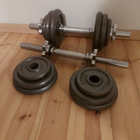 Myydään hyvä kuntoiset, säädettävät käsipainot.