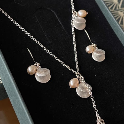 Täysin käyttämätön kaunis HAAVE korusetti. Vuoden 2021 koruja koristaa Niina Halosen Helsingissä käsityönä tekemä lasihelmi.