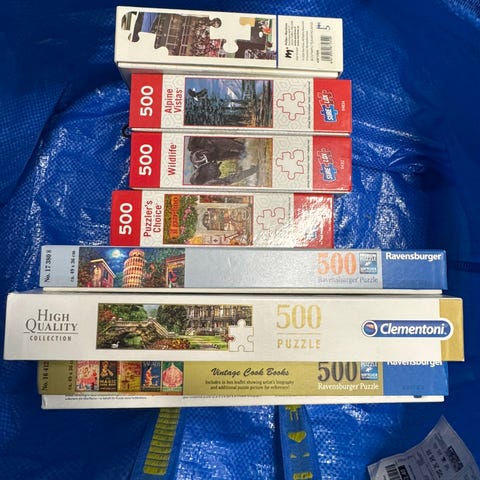 3 erillistä kassia palapelejä 40€/kassi 1, 2, 3 NOUTO ESPOO Latokaski