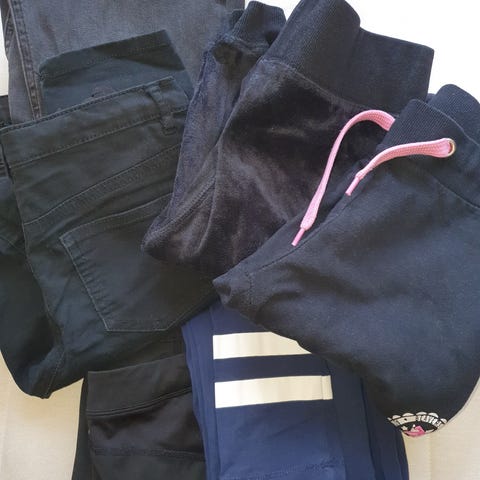 Myydään kuvan poikien housupaketti koossa n.146/152cm. Koot housuissa vaihtelee, mutta meillä ollut käytössä mainitussa koossa.