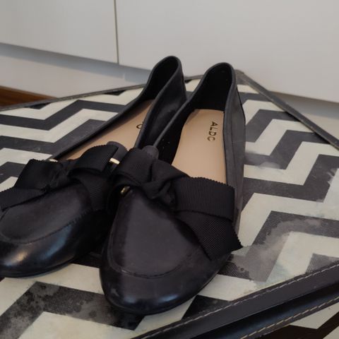 Myynnissä ALDOn mustat korkopohjalliset loaferit/mokkasiinit, aitoa nahkaa. Ollut käytössä vain muutaman kerran; ostin Zalandosta kokosuosituksen mukaisesti, mutta olivatkin liian pienet. Pohja vahvaa kumia. Koko 39, sisämitta 25 cm.
