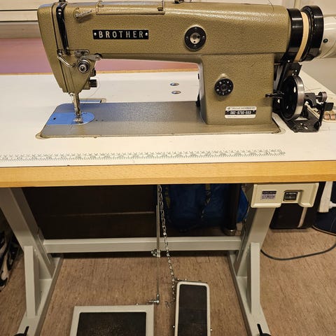 Mauser Spezial teollinen ompelukone pöydällä. Kone soveltuu esimerkiksi nauhojen tai reunojen ompeluun. Sopii paksumpien ja useampikerroksisten materiaalien ompeluun, kuten verhoilu- tai tekniset tekstiilit. mm. neopreeni.
