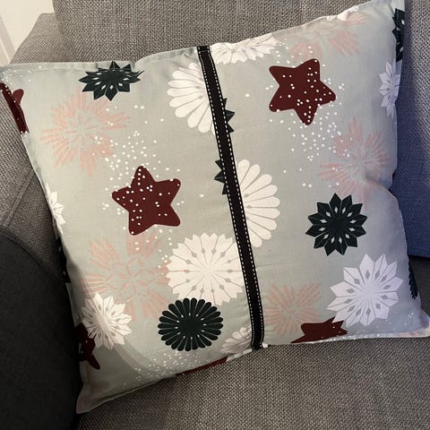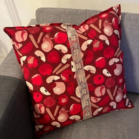 Pentik kangas, myös sisätyyny on uusi. Keskellä punainen nauha