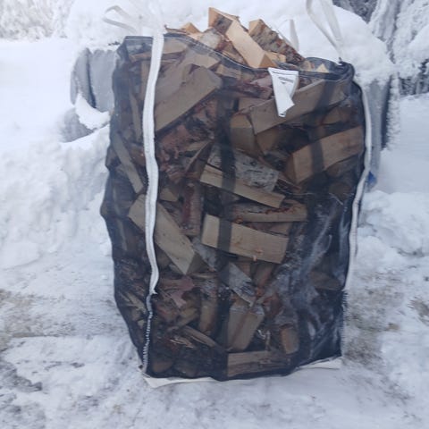1,5m3 säkeissä pinottuna.