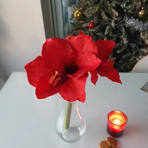 Kestävä ja huoleton vaihtoehto aidolle Amaryllikselle – ei kuihdu, ei allergisoi eikä varise. Täydellinen valinta joulukotiin, jossa arvostetaan tyyliä ja helppoutta.