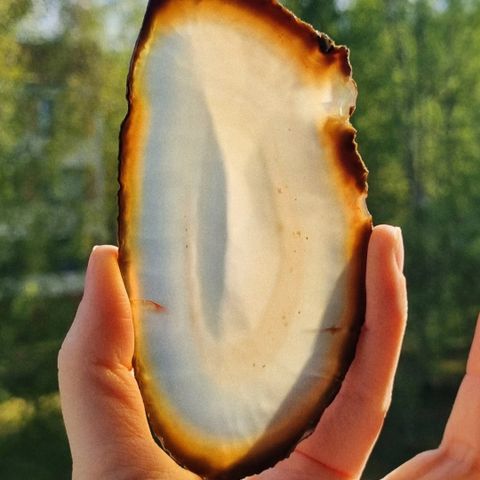 Kaksi sarjaa akaatti pikareita. Isommat 1 dl ja pienemmät 0,5 dl