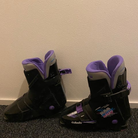 Dalbello merkkiset laskettelumonot värissä musta ja pinkki. Kokomerkintä 245. Olleet meillä käytössä 36-37 kokoisella jalalla. Tyylikkäät monot rinteeseen.
