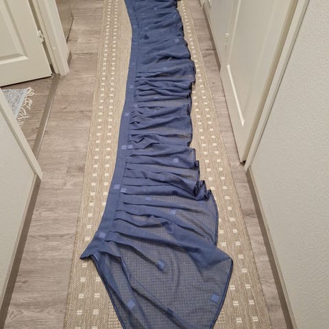 Kyseessä valmisverho eli ei ole itse tehty mitään pitsimäistä alaosaa reunaan.