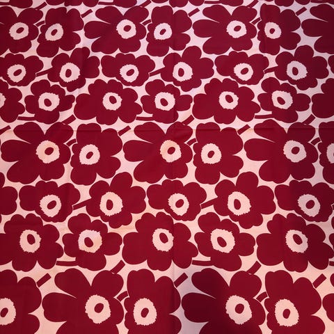 Mini Unikko-kangas, 100% puuvillaa. 145cm x 60cm. Käyttämätön. Greigepohja, tummanruskea sisus.