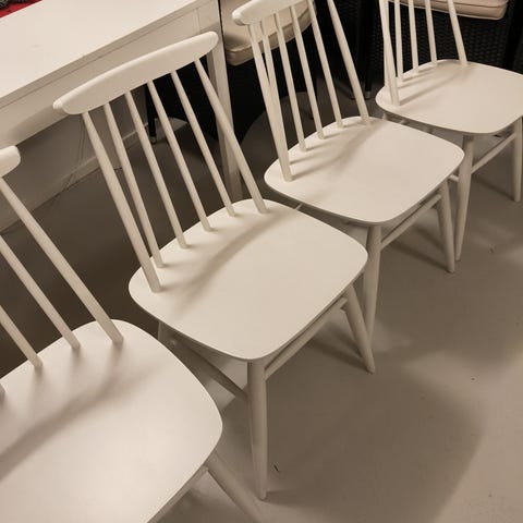 Myydään tarpeettomina vanhat valkoiset 7-pinnaiset tuolit. Toinen tuoli hyväkuntoinen ja toisessa istuimessa vähän kulumaa. Taivutettu etureuna. Todella tukevat tuolit.