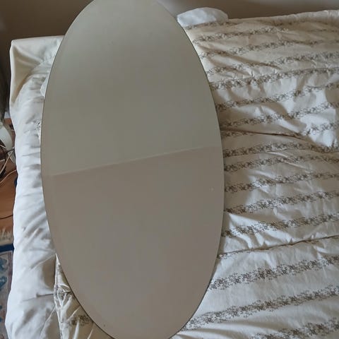 1700x1500 epäsuoralla valolla taustavalaistu peili pähkinän sävyisillä reunalistoila.