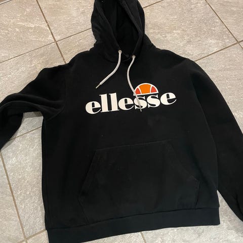 Pari kertaa pesty harmaan ja valkoisen kirjava Ellessen huppari, jossa etutasku.