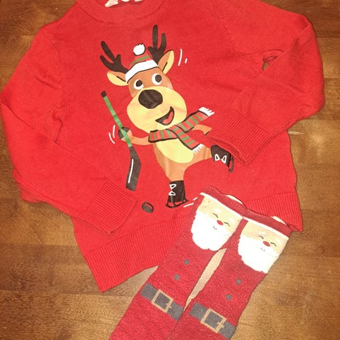 Uudenveroinen joulupaita sillä poikkeuksella että ylin nappi puuttuu. Se yleensä kuitenkin ollutkin auki eikä sitä huomaa.