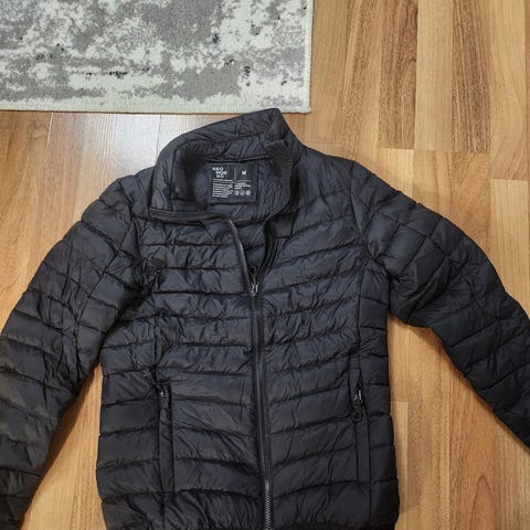 Ihanan kevyt, kauniin pinkin värinen kevyttoppa. Koko 44-46. Kainalo-kainalo 55cm ja pituus olalta helmaan 65cm.