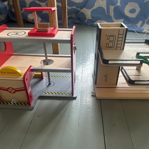 Puinen palolaitos ja tarvikkeet pukinkonttiin