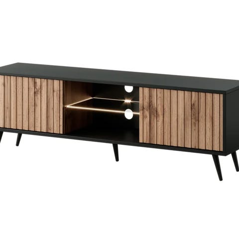 Tämä kompakti TV-taso yhdistää klassisia elementtejä moderniin muotoiluun luoden persoonallisen yksityiskohdan kodin sisustukseen. TV-tason kaksi vetolaatikkoa tarjoavat mukavasti säilytystilaa.