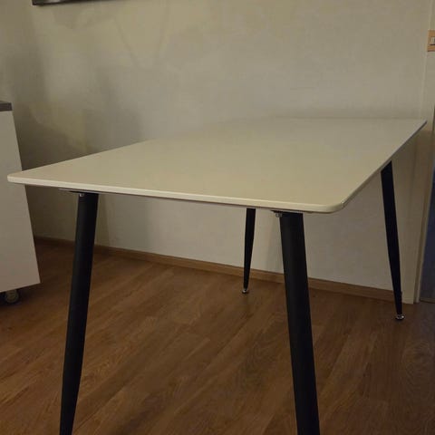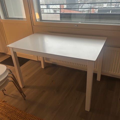 Siro neljän henkilön ruokapöytä. Ollut käytössä muutaman vuoden. Tarvittaessa jalat saa irrotettua kuljetusta varten (ruuvikiinnitys).