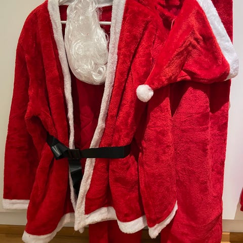 Myynnissä Joulupukin samettinen asukokonaisuus, joka sisältää: