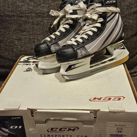 CCM Jääkiekko Luistimet koko 36, musta väri. Luistimet on suunniteltu jääkiekkoon ja sopivat lapsille. Materiaalina on kestävä ja tukevasti muotoiltu rakenne, joka tarjoaa hyvän istuvuuden ja suojan. Luistimet soveltuvat jääkiekkoharjoitteluun ja -peleihin.
