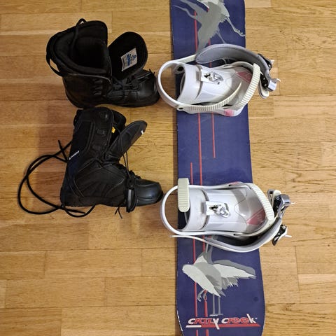 Burtonin lumilauta 110. Hyvä ensilauta opetteluun. Myös lumilautakengät (koko n. 33) myynnissä Torissa.