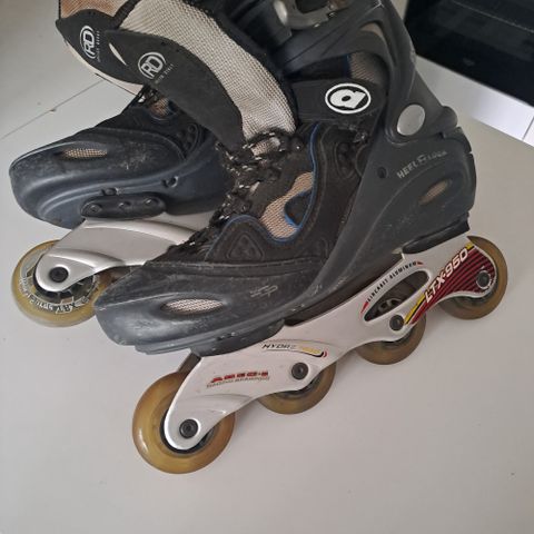 Käytetyt, mutta hyväkuntoiset rullaluistimet ja suojus-setti. Rullaluistimet koko 38 ja suojat koko S. Sisältää polvisuojat, kyynärsuojat ja rannesuojat.