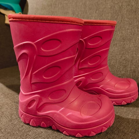 Ei mitkäään priimakuntoiset saappaat mutta pitävät hyvin vettä. Kakkossaappaiksi tai päiväkotiin hyvät.