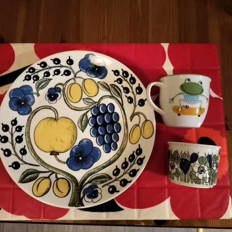 Arabian virheettömät Apollo-sarjan kahvikupit/aluslautaset 6kpl,Pentikin kynttilänjalka ehjä