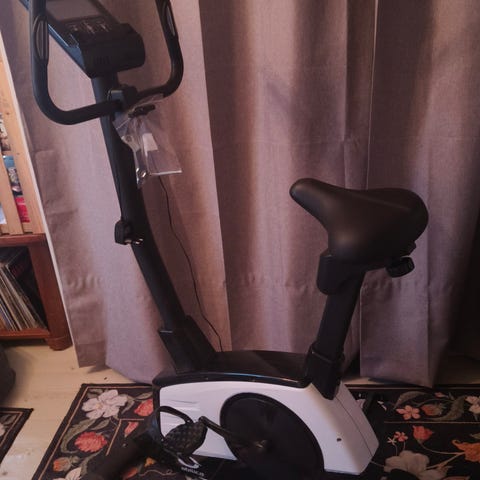 Kuntopyörässä on säädettävä vastus, digitaalinen näyttö harjoitustietojen seuraamiseen ja mukava satula. Saa pienempään tilaan säilytyksen ajaksi (viimeinen kuva). Pyörä noin 1,5 vuotta vanha, melko vähällä käytöllä ollut. Ei käytönjälkiä.