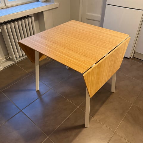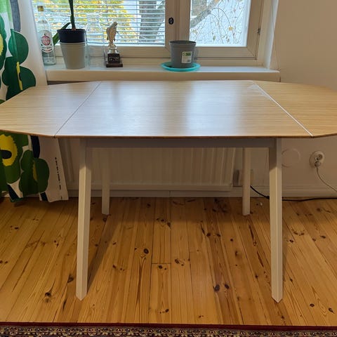 Tukeva ja siistissä kunnossa oleva jatkettava ruokapöytä, jtk pieniä jälkiä pinnassa on (kuva). Pöydän mitat kuvissa.