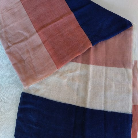 Pehmeä kaulahuivi on neulottu laadukkaasta villan (56%) ja alpakan (44%) sekoitteesta. Huivin mitta on 25 cm x 170 cm. Lähes käyttämätön.