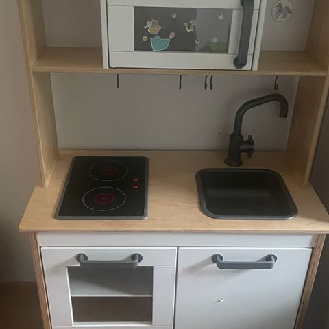 Ikea leikkikeittö ok kunto (jotain oli piirretty mikä vähän näkyy, siitä kuva), levy toimii vaihtelevasti.