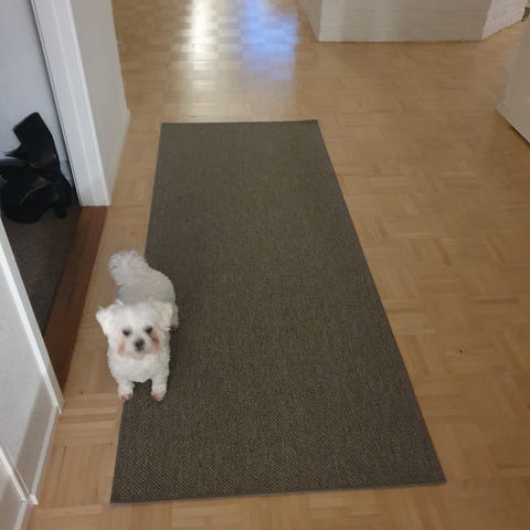 Hyväkuntoinen eteisen matto tarpeettomana. Ikää ehkä viitisen vuotta. Vaatii pesun alapuolelta jos haluaa priimakuntoisen, muuten yleisilmeeltään siisti ja ehjä.