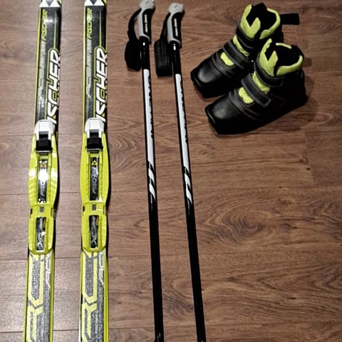 Pitopohjasukset 160 cm, Fischer Sprint sauvat 115 cm ja Snow Strom 799 -monot koko 37, lisäksi suksipidikket. Maksu käteisellä ja haku kotoa.