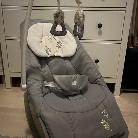 Joie Dreamer sitteri, paristoilla toimiva värinä ja muutama erilainen äänitoiminto. Kyseinen toiminto toimii, mutta välillä joko kosketushäikkää tai vaatisi uudet paristot. Ollut käytössä lähinnä istuma/keinuttelukäytössä ilman värinää.
