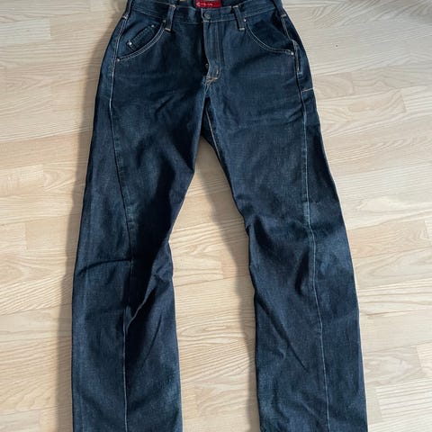 Myynnissä Indigofera -merkin farkut. Lappu, jossa näkyisi malli, on valitettavasti leikattu irti. Farkut on lyhennetty, lahkeen sisämitta on n. 75-76 cm. Farkut ovat muutoin siistikuntoiset, mutta haaran kohdalta on tikkaus irronnut noin sentin matkalta (viimeinen kuva).