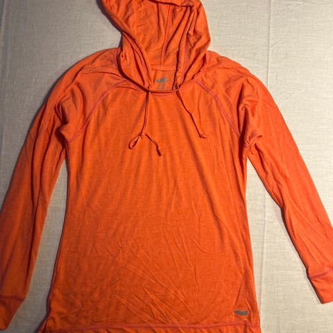 Kerran käytetty (väärä koko). Takaa pidempi. Kengurutasku, kiristysnyöri hupussa
