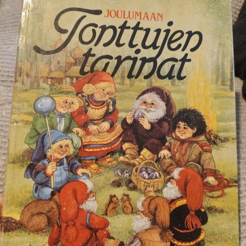 Suuri tonttukirja. Kunto hyvä. Päällyspaperin reuna hieman kääntynyt.