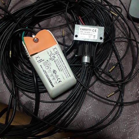 Otava kuitusarja LED-projektorilla. Kuitunipun kaikki 7 kuitua ovat 3 mm paksuja.