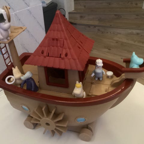 Muumien minikokoiset uimahuoneet ja laiva. 5 e/ kpl.