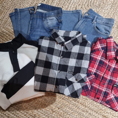 Myydään sekalaisia vaateita 8 kassillista(kuvassa vain 5). Suurinosa lasten vaatteita mutta myös naisten vaatteita. Saa tulla katsomaan ja tarjoamaan jotain? Valitettavasti kamera hajosi joten tuo ainoa kuva. Myynnissä myös miesten vaatteita mm erittäin hieno puku. Kaikki vaatteet ehjiä ja mukana monia vain kerran käytettyjä vaatteita. Pojalle/miehelle myynnissä black horse pitkähihainen paita 152/158. Speedo uikkarit 100. Icepeak pitkä lahkeiset shortsit 164. Rcover shortsit 170. Jack and jones pitkähihainen S. Hm pitkähiha 152. Primark pitkähiha 164. Niken verkkarit 152. C huppari 158/164. Silver bull t-paita 152. Primark pitkähiha 164. Rcover t-paita 170. Monia t-paita S. Smog t-paita S. Hampton kauluspaita 158/164. Kahdet Rcoverin bokserit 150.Verkkarit Rcover 150. Puma t-paita L. Uikkarit suncoast 100. Primark pitkähiha 164. Mywear huppari 158/164. Nameit verkkarit 152. Crivit shortsit. Adidas huppari 158/164. Adidas shortsit usa koko 10. Gildan Kekkonen saatanan tunarit t-paita 160. Tytölle/naiselle. Sand pitkähiha 160. Primark pitkähiha S. Puma t-paita xxl. Cmp huppari xxs. Glop pitkähiha 158. Verkkarit kesko ML. Amisu pitkähiha xs. Pola housut L. HM hame 36. Festa pitkähiha 42. Tally weijl hihaton paita XS. Gant pitkähiha L. Esmara mekko 36/38. Mximze hihaton paita 158/164. Verkkarit S. Stay t-paita 160. Angry birds yöhousut 158/164. Vendi verkkarit 160. M.X.O pitkähiha S. Adidas huppari 152. Primark hihaton paita 146. Cheetah mekko S. Angry birds yöhousut 158/164. Mekko L. Olohousut L. Crivit housut 40/42. HM housut 40. Adidas urheilupaita 164. Only play urheilupaita XS. Perfect jeans farkkushortsit 38. Tervetuloa katsomaan pyhättömänmäelle.